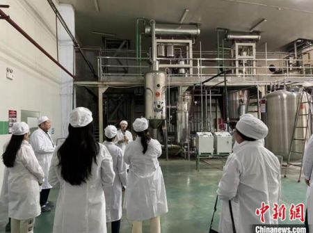 海外华文媒体一行在珲春深入了解人参制品生产过程。 李钊 摄