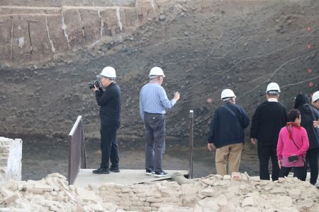 图为海外华文媒体代表在州桥遗址参观。
