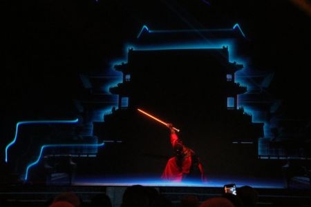 《闸口盘车案》是开封府全息剧场推出的首个沉浸式全息侦探剧目,依托全息立体成像、裸眼3D视效、虚拟现实交互等科技,使观众在虚拟与现实融合的双重时空中,体验东京梦华的繁华盛世,经历刀剑往来的惊险对战,也见证青天明月的公正公义。