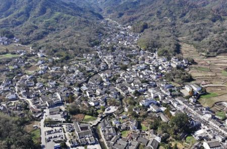 (查济古村鸟瞰。(无人机照片)中新社记者 韩苏原 摄)
