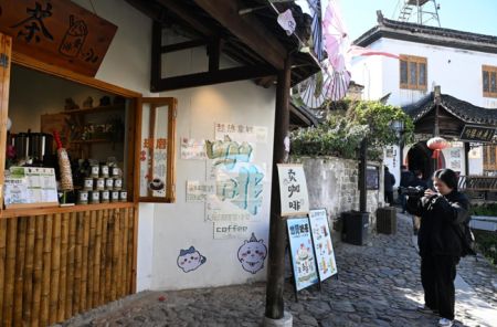 (一位游客在查济古村拍摄。中新社记者 韩苏原 摄)