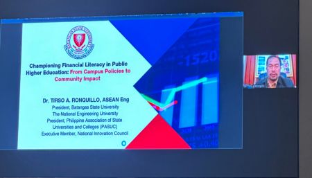 In the afternoon, Dr. Tirso A. Ronquillo, President of PASUC, and Jean Henri D. Lhuillier delivered keynote addresses on linking financial literacy to educational policy and community development. Atty. Charina B. Vera-Yap of the Bangko Sentral ng Pilipinas presented digital inclusion initiatives, while Dr. Francisco S. A. Sandejas of Xepto Education Philippines and Dr. Laarni Evelyn A. Santiago of the University of Makati shared technology-driven strategies for classroom integration。