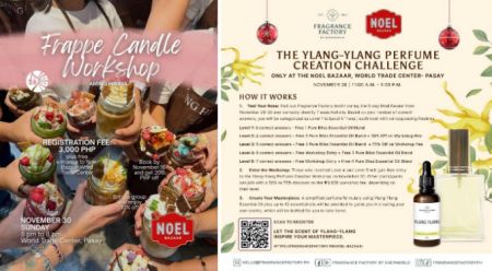 Craft lovers can get hands-on with a variety of creative workshops—such as chunky bag making with Kimot PH, art sessions with Artistic Guild PH, fragrance crafting with Fragrance Factory by Chemworld, and a frappe candle-making workshop with Aming Hiraya。