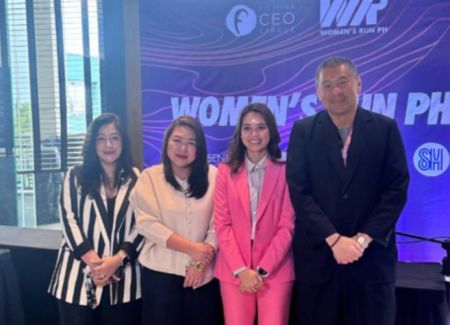 SM Aura AVP for Marketing Marga Catalan, SM Mall of Asia SAVP for Marketing Krisel Ramilo, Women's Run PH Founder and CEO Nicole Dela Cruz, and SM Supermalls EVP for Marketing Joaquin San Agustin。