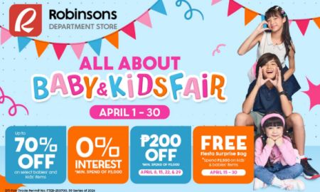 Ready your shopping carts and don’t miss out on Robinsons Department Store’s All About Babies & Kids Fair this April, including a special activation at Robinsons Manila’s Midtown Atrium from April 14 to 20, 2026. Aside from discounts, Go Rewards members can enjoy an additional P200 off (minimum purchase of P3,000) on all Wednesdays of April. You can also take home a free Fiesta Surprise Bag for a minimum purchase of P2,500 on kids and babies items。