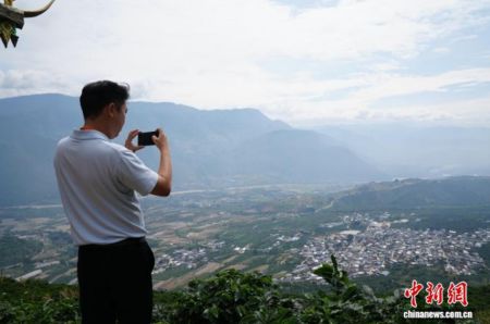 9月10日,前来参加第十二届世界云南同乡联谊大会的海外同乡代表走进云南保山,感受保山的历史文化和华侨先辈的爱国情怀。图为与会代表走进位于怒江畔的潞江镇新寨村,当地种植咖啡历史已有半个世纪。中新社记者 刘冉阳 摄