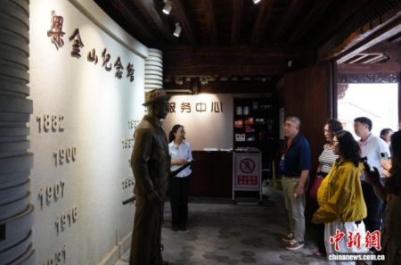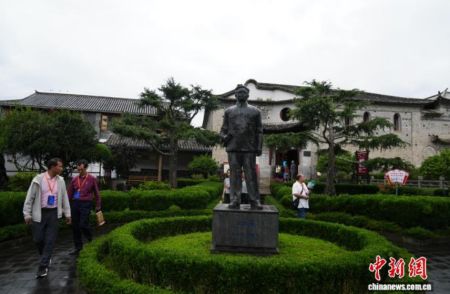 图为嘉宾在保山蒲缥镇的梁金山故居参观,梁金山是中国著名爱国侨领,抗战期间,他倾尽家财筹集大量资金支援前线。中新社记者 刘冉阳 摄