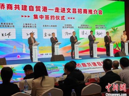 4月4日,在2025侨商共建自贸港——走进文昌招商推介会上,10个项目集中签约。 中新社记者 韩辉 摄