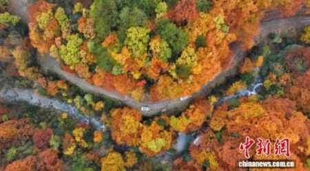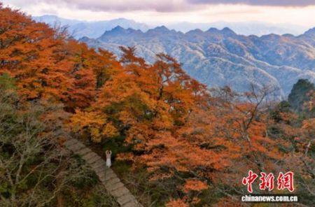 四川旺苍米仓山万山红遍 游客陶醉彩林间