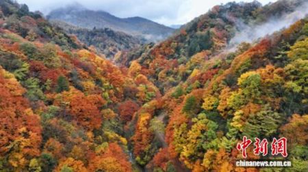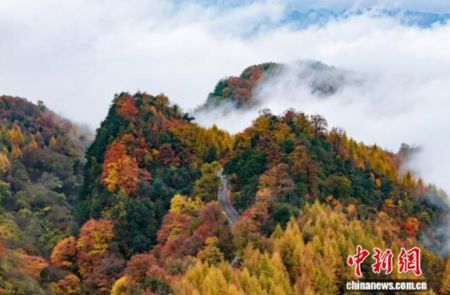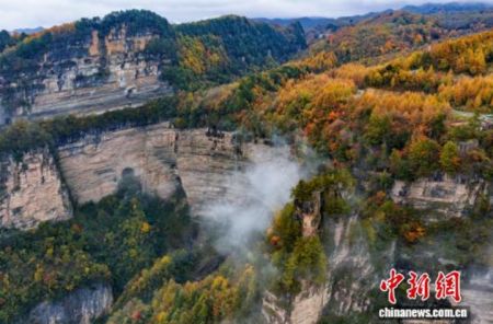 深秋时节的旺苍米仓山层林尽染、云雾缭绕宛如仙境。