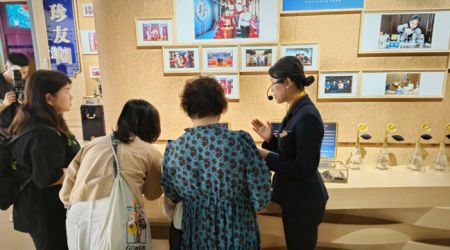 在企业文化展厅前,讲解员借助图文并茂的展板,向体验官们娓娓道来珍酒的发展史与“中国白酒一号工程”的渊源。从建厂初期的艰辛探索,到荣获“国家质量奖”的辉煌时刻,再到如今产能跨越式发展的壮阔蓝图,一张张老照片、一件件旧实物,让海外嘉宾深刻感受到中国白酒企业的坚守与韧性。