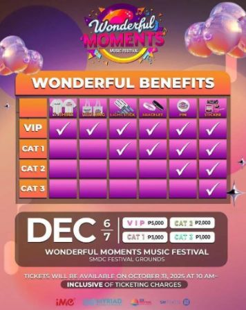 Unwind and release your inhibitions with the ‘kada at the Wonderful Moments Music Festival, happening December 6-7, 2025, at the SMDC Festival Grounds in Aseana City, Parañaque City. This event is dedicated to immersive experiences and unforgettable performances from the generation’s top OPM icons, creating core memories through world-class audio, visuals, and interactive activities.