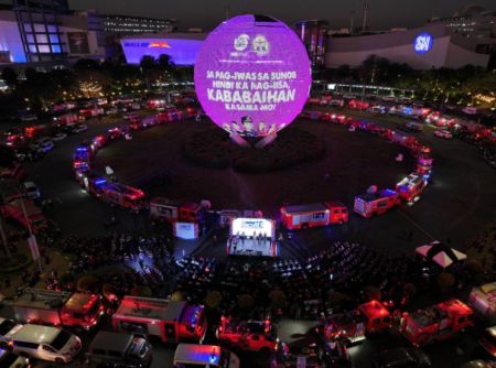 A large-scale Fire Prevention Month illumination at the SM Mall of Asia Globe featured a dramatic “Venus Symbol Formation” created by 263 fire trucks and emergency vehicles, with 2,827 participants, honoring firefighters and raising awareness about fire safety and emergency preparedness。