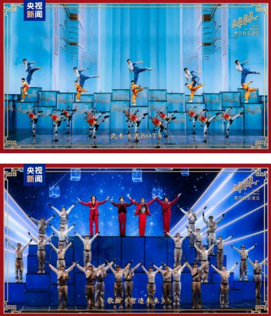 舞蹈《踏地为节》汇聚四方舞步,哈尼族木屐舞、傈僳族“阿尺木刮”、西班牙弗拉门戈、匈牙利传统舞蹈莱盖涅什在整齐的踏地声中,舞出对新岁丰饶的祈愿。中国与奥地利的杂技团共同带来创意杂技《绘新春》,抖空竹和抛杂耍棒配合轨迹捕捉与成像技术,以光为笔画出绚丽光影,将新春祝福传遍四方。