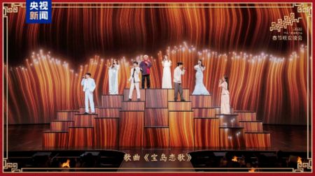 同心盼归。胡德夫、辛晓琪、伊能静、周传雄、苏有朋、侯佩岑、欧阳娜娜、陈立农带来组曲《宝岛恋歌》,悠扬的旋律跨越海峡,同根同源的血脉共鸣流淌在每一个音符里。