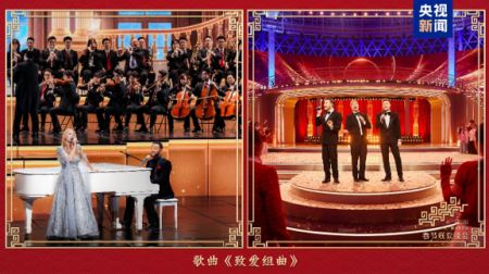 跨越山海,共舞节拍。美国歌手John Legend(约翰·传奇)、法国歌手Hélène Rollès(伊莲·霍莱斯)带来经典之作《All of Me》(《我的一切》)和《Beauty and the Beast》(《美女与野兽》),岁月不居,此心永恒。爱尔兰组合Westlife(西城男孩)以一曲《My Love》(《我的爱》)亮相春晚舞台,愿你踏遍星河,终抵热爱。