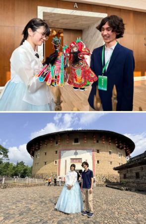 参加推介会前,刘智恩与瑞利·谢泼德已于4月17日在父母的陪同下,跨越山海来到福建开启一场沉浸式的“清新福建”闽南文化之旅。从“屿见闽南·时光幻境”的科技与非遗融合,到漳州古城的青石板路、红砖燕尾脊,再到南靖云水谣的土楼、九龙江边的花海,他们用脚步丈量福建,用心感受这片“有福之地”。行程持续到20日结束,两位“小马可·波罗”将在回国继续在当地开展线上线下福建文旅宣传推广。