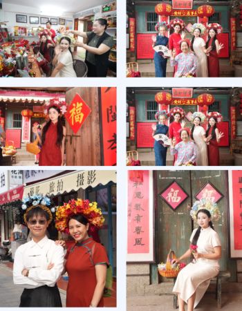 随后,踩线团前往蟳埔村体验“蟳埔女簪花围习俗”。当地非遗代表性传承人一边为嘉宾盘发、插花,一边讲述蟳埔女簪花的由来与寓意。大家不仅感受到“今生簪花,世世漂亮”的美好祝福,更带着“此时簪花,一路繁花”的喜悦拍照留念。来自欧洲的女嘉宾头戴色彩鲜艳的簪花围,漫步在蚵壳厝间,与当地村民合影。