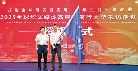 8月26日,“打造全球研發新高地、大學生創業集聚地——2025全球華文媒體高層湖南行”大型採訪活動在湖南長沙啟動。圖為啟動儀式現場。