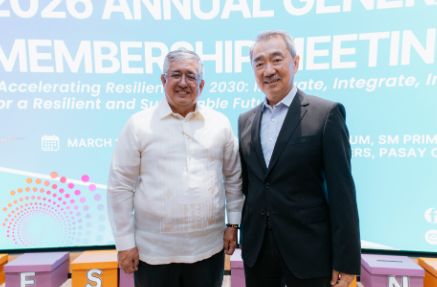A shared vision for a resilient Philippines. Hans Sy Chairman of SM Prime Holdings Executive Committee and Chairperson of the ARISE PH Private Sector Alliance for Disaster Resilience Societies, was joined by Office of the Civil Defense Undersecretary Harold Cabreros and the ARISE Philippines Board of Directors during the organization's 2026 Annual General Meeting held on March 26.