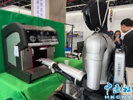 創新中心內,不少企業員工正在訓練機器人。一台咖啡機旁,工作人員手戴感應手套,一邊盯著機器人,一邊細微緩慢作出動作,讓機器人從抓起咖啡杯開始,模仿學習製作咖啡。旁邊的工位上,機器人正在按照指令搭積木,電腦屏幕快速閃過指令代碼。據了解這種模擬訓練已經數千次,但還未能達到百分百準確。